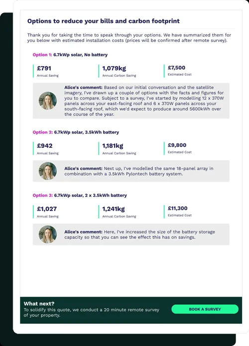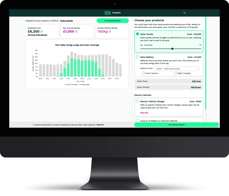 We also model the interaction between different green solutions, such as solar, batteries, owning an EV or getting a heat pump!